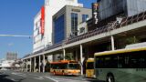 商業施設ラクーン前の交差点と車が行き交う都市風景