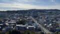 駅前交差点と商業ビルが並ぶ夕方の都市風景